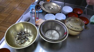 本日の1・2校時に5年生が調理実習を行いました。今日はご飯を炊いて味噌汁を作ります。まずは味噌汁づくりからで、出汁となる煮干しの頭をとる作業からスタートしました。おいしくできたか、楽しみです。
