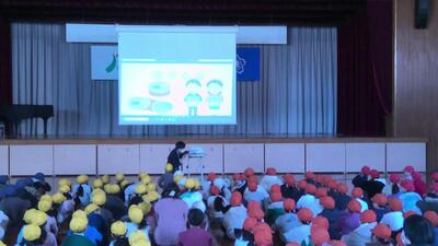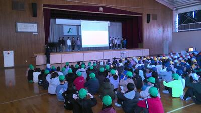 今日の業前時間に、放送委員会と環境委員会による児童集会が行われました。放送委員会では、放送機器の説明などの他、事前のアンケート「放送で流す曲はどのように決めているの」「放送委員はいつ給食を食べているの」などの質問に答えたりしていました。環境委員会では、活動内容の説明の他、「スイ水リサイクルでアルミ缶回収が一番多かった月は」「花壇に植えてある花の名前は」などの〇✕クイズをしたりしました。日頃の委員会の仕事を分かり、クイズ等で楽しい時間を過ごすことができました。