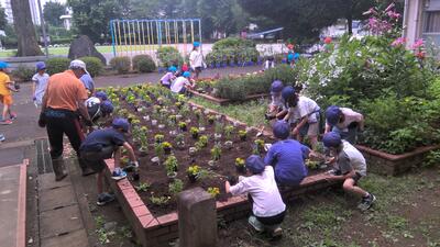 本日の昼休みに、職員室前花壇に花を植えました。あいにくの天気で前日はできませんでしたが、今日無事植えることができました。環境委員の他、花植えボランティアとして多くの子どもたちが参加してくれ、短時間で植え終わることができました。今週は、授業参観・懇談会を予定していますが、みんなで協力して植えた花々をぜひご覧ください。