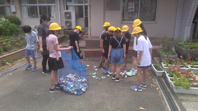 本日は、2学期最初のスイ水リサイクルの日でした。今日も朝から暑い中でしたが、環境委員の子どもたちが手際よく空き缶をつぶして、アルミ缶を回収してくれました。今日の回収量はこれまでで最も多い、4.4kgで、累計19.6kgとなりました。保護者・地域の皆様、ご協力ありがとうございました。なお、次回は9月17日となります。