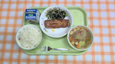 【今日の献立】牛乳、ごはん、さんまのかば焼き、小松菜のおひたし