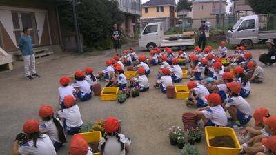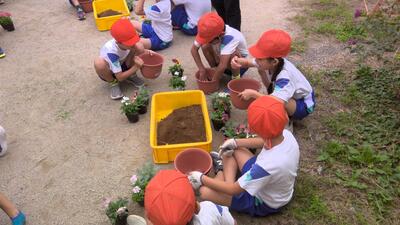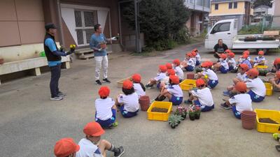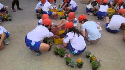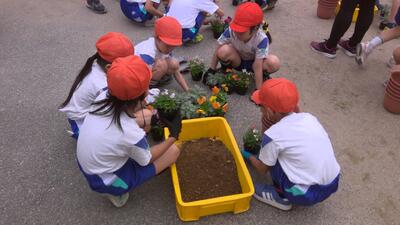 本日3校時に3年生が参加して、花育教室が行われました。鴻巣市では、「鴻巣産の花を身近に置き、親しみ、育て、四季の移ろいを楽しみながら学校生活を送ることで、花を愛し、情操面の向上を図ること」を目的として、花育教室を行っています。今日は、花農家・市役所の方のご指導いただき、児童が花の寄せ植え体験をしました。グループごとに、まず鉢の中に土を入れ、3種類の花の植え付けを行いました。花を身近に感じることができる、貴重な時間となりました。