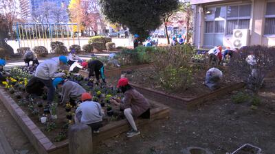 花いっぱい運動 投稿: 鴻巣東小学校 (13:40) 本日の昼休み、職員室前の花壇に色とりどりの花を植えました。高学年を中心に多くの花植えボランティアが集まり、手際よく楽しそうに植えていました。ボランティアのお蔭で、短時間で多くの花を植えることができました。とても助かりました。 Tweet -