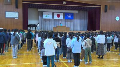 本日の1校時、体育館に全校児童が集まり、第2学期終業式が行われました。校長式辞では「あいさつを家庭でもしっかり実践すること」「規則正しい生活をして、感染症や病気を寄せ付けない健康な体にしておくこと」「交通が激しくなる年末年始、交通事故に気を付けること」の話をしました。また、2人の児童代表の言葉では、2学期にがんばったことや3学期にがんばりたいことを上手にまとめ、しっかり発表していました。冬休みの生活については、「お」手伝いをすること、「み」の回りの整理・整頓をすること、「や」さしく人と接すること、「げ」んきに冬休みを過ごすことという4つの約束を守って楽しい冬休みにしましょうと呼びかけました。また元気なけやきっ子に1月8日に会えるのを教職員一同楽しみにしています。保護者・地域の皆様、2学期も本校の教育活動にご理解・ご協力いただき誠にありがとうございました。来年もどうぞよろしくお願いいたします。よいお年をお迎えください。
