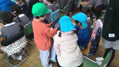 本日の3・4校時に、鴻巣幼稚園及び鴻巣えほんの森保育園の年長さんたちが来校し、1年生との交流会を行いました。寒い中でしたが、1年生の教室でタブレットを使用するなどの1年生体験、図書室など特別教室の学校案内、最後に体育館で一緒にこおりおにをするなど、楽しい時間を過ごすことができました。1年生もタブレットの使い方をやさしく教えたり、先頭に立って学校を案内するなど、一つ上のお兄さん、お姉さんとして頼もしい姿を見ることができました。来年度の入学を楽しみにしています。けやきっ子みんなで待っていますね。
