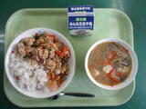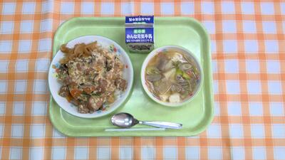 【今日の献立】牛乳、油麩丼(宮城県の郷土料理)、つぼ漬け