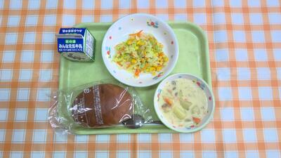 【今日の献立】牛乳、黒パン、じゃがいものクリーム煮、コールスローサラダ