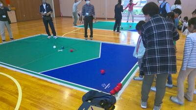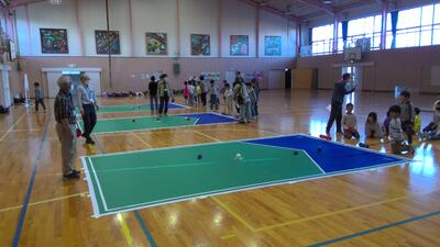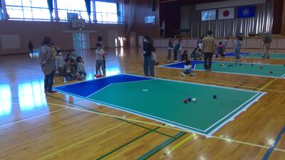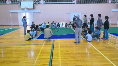 本日の放課後子ども教室では、体育館でボッチャが行われました。ボッチャはパラリンピックの正式種目です。ジャックボール(目標球)と呼ばれる白いボールに、赤・青のそれぞれ6球ずつのボールを投げたり、転がしたり、他のボールに当てたりして、いかに近づけるかを競います。けやきっ子にとって初めての体験で、市役所の方やスポーツ推進委員の方からルールを説明してもらってから実際に行いました。4つの場所に分かれて行いましたが、どの場所からも歓声が聞こえてきました。今日も貴重な体験の時間となりました。