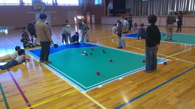 今日の放課後子ども教室には、2・3年生が参加しました。今日は特別教室として、体育館でボッチャを行いました。最初に全体でルールの説明を聞き、6チームに分かれ、3つのコートで対戦を楽しみました。なかなか思うような場所に投げられなかった子も、回数を重ねるにつれて上手になっていく様子を見ることができました。
