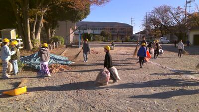 いよいよ色づいた大けやの葉が本格的に落ち始めましたが、今週から落ち葉掃き週間がスタートしました。今週の担当は4年生です。登校するとすぐに竹ぼうきをもって意欲的に掃き集め、ゴミ袋に入れていました。2~3人くらいで協力しながら何袋も集めて、今日もたくさん回収してくれました。朝寒い中でしたが、落ち葉掃きを終えて清々しい子どもたちの表情が印象的でした。